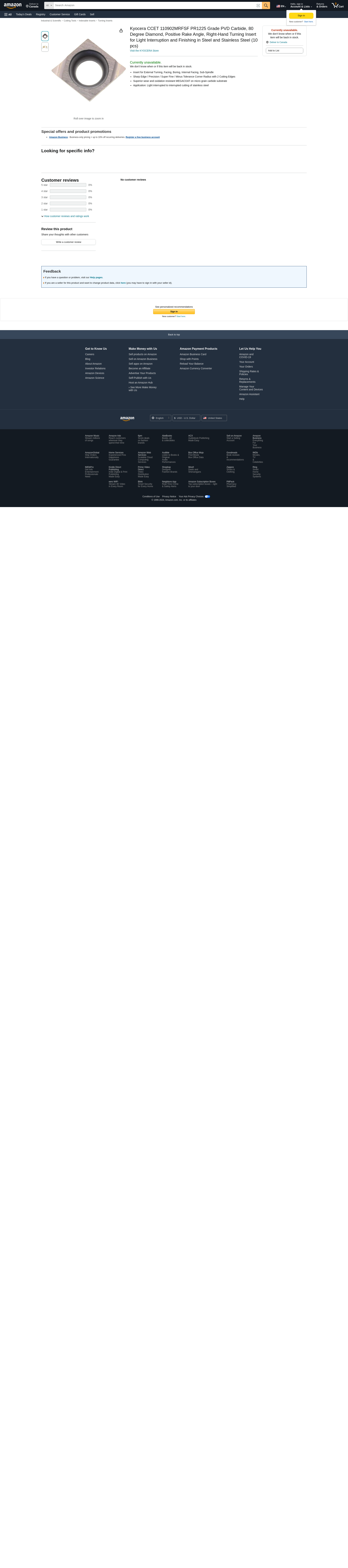 Kyocera CCET 110902MRFSF PR1225 Grade PVD Carbide, 80 Degree Diamond, Positive Rake Angle, Right-Hand Turning Insert for Light Interruption and Finishing in Steel and Stainless Steel (10 pcs)
