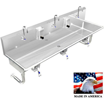 BSM Inc. Stainless Steel Sink, 3 Station w/Knee Valve Operated, Round Legs 72"L X 20"W X 8"D