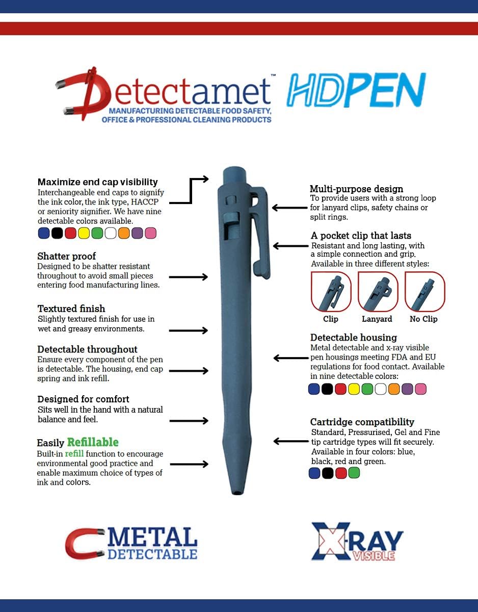 Metal and X-Ray Detectable Food Safe HD Retractable Pen, Pink Housing, Purple End Cap, Gel Red Ink - Without Pocket Clip, Pack 50 EA