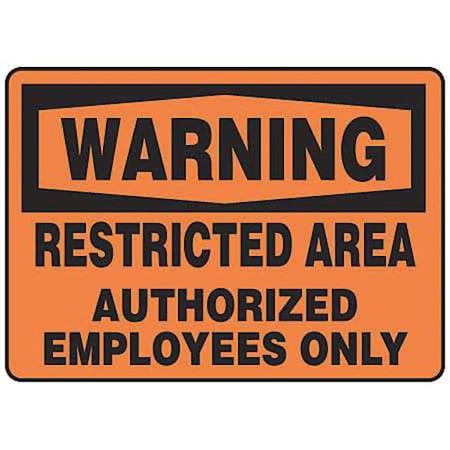 Accuform MADM306VS Adhesive Legend "Warning Restricted Area Authorized Employees ONLY" Sign, 10" Height, 14" Wide, 10" Length, 0.004" Thickness, Vinyl, Black on Orange