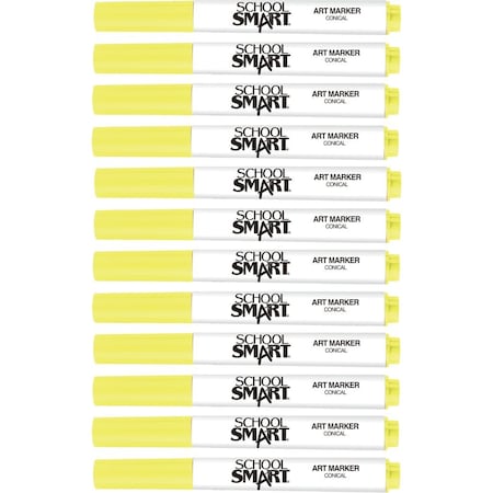 School Smart Art Markers, Conical Tip, Yellow, Pack of 12