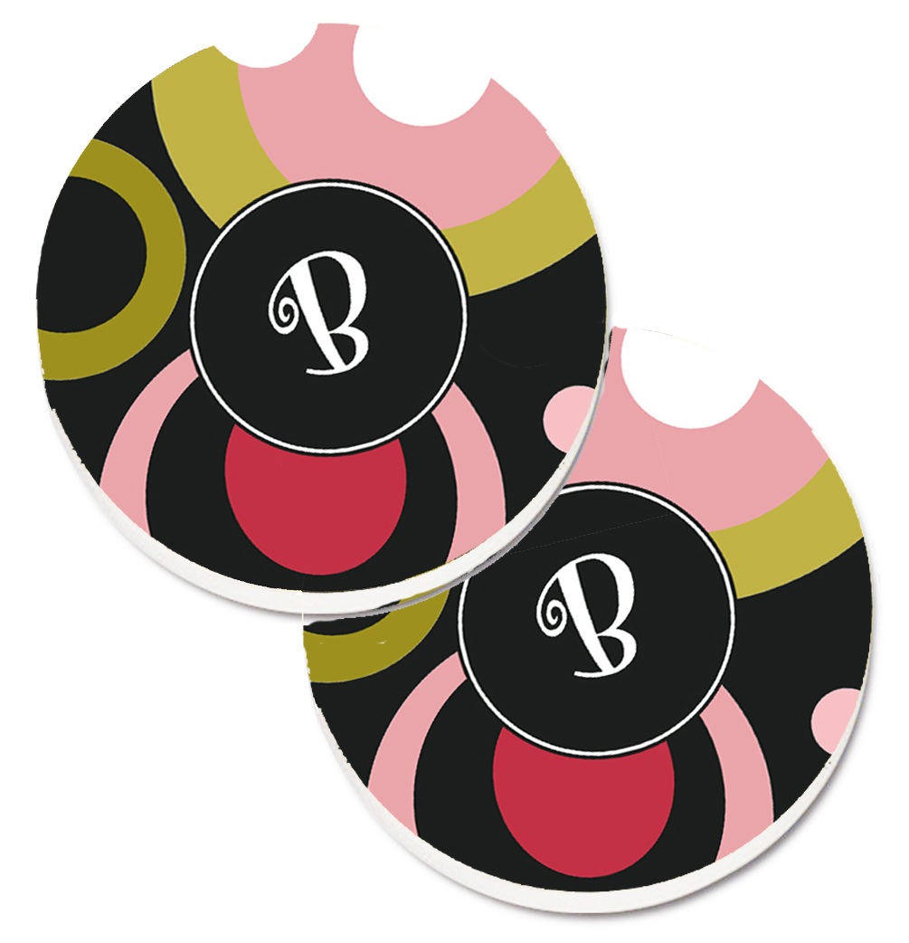 Carolines Treasures AM1001-BCARC Letter B Monogram Retro in Black Set of 2 Cup Holder Car Coaster