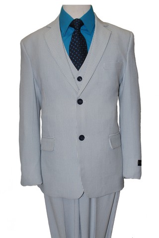 Mens Suits Tic Texture with Satin Black Trim 2 Button Vested Notch Lapel Boys Suits Blue - 4