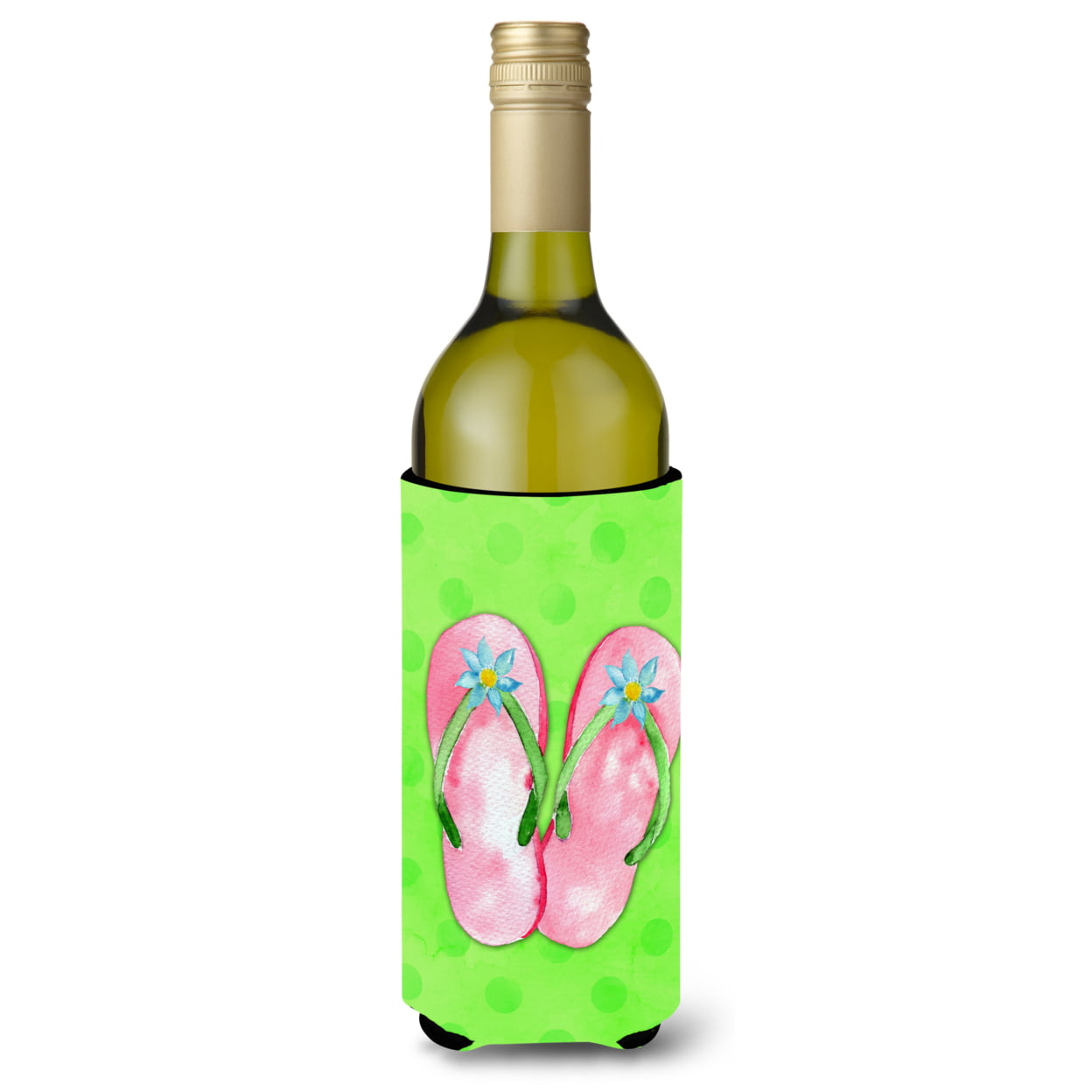 Carolines Treasures BB8220LITERK Pink Flip Flops Green Polkadot Wine Bottle Beverge Insulator Hugger
