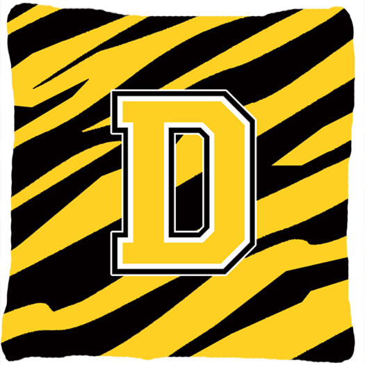 Carolines Treasures CJ1026-DPW1414 Monogram Initial D Tiger Stripe - Black Gold Decorative Fabric Pillow