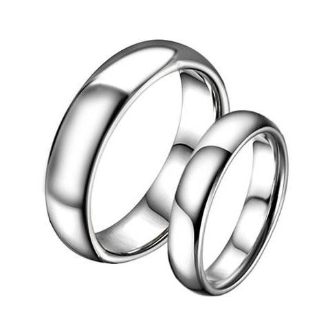 CET Domain SZ17-R175-6 Titanium Steel Silver Band Couple Rings- Women-Size 6