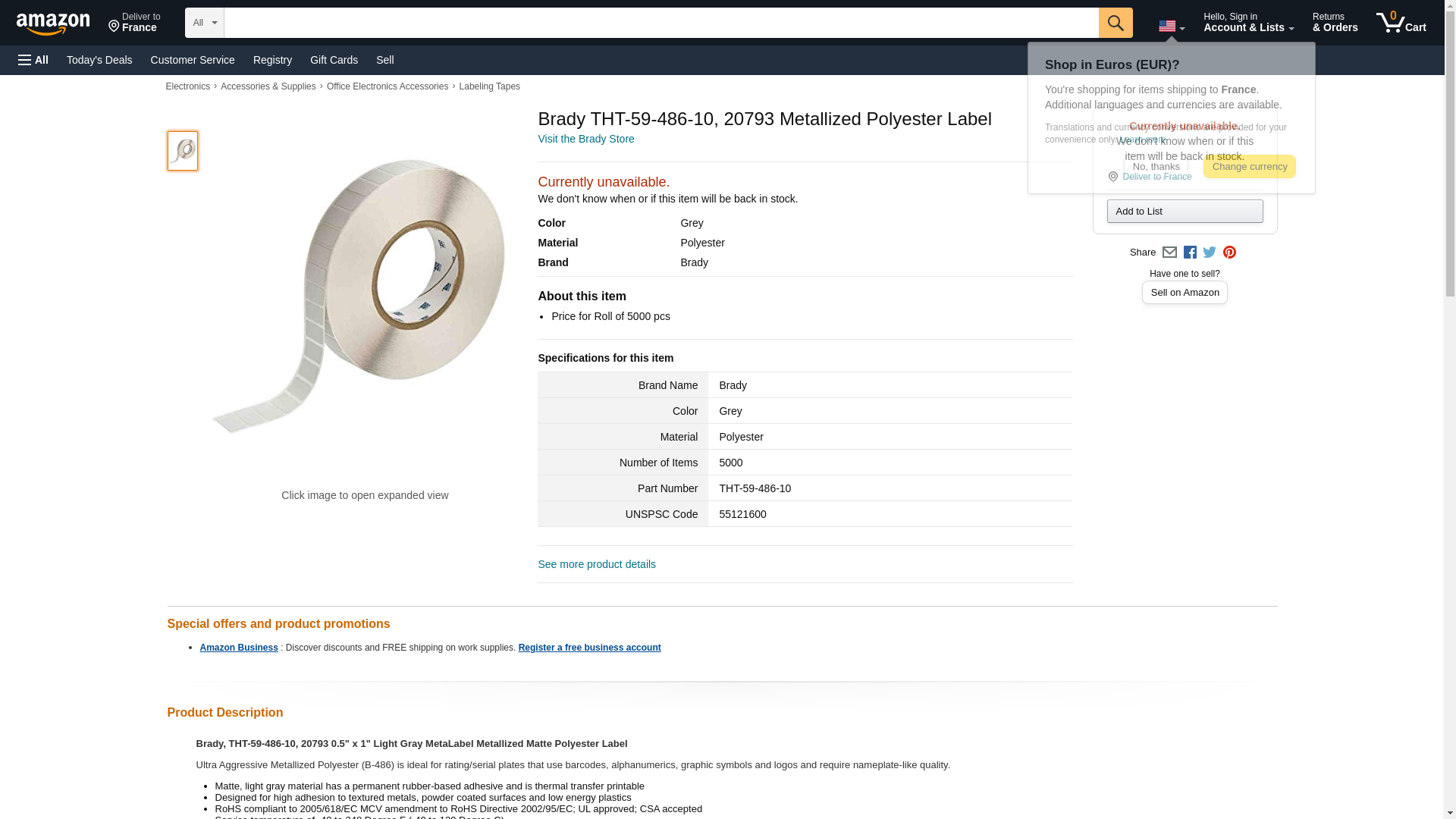 Brady THT-59-486-10, 20793 Metallized Polyester Label