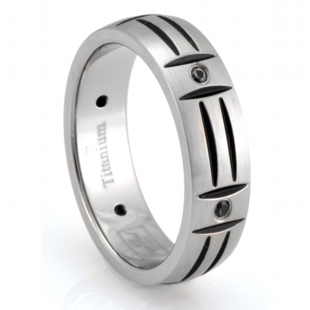 Eternal Bond VJEBTT-052-SZ11 Beveled Edge Black and Silver Tone Mens 8mm Titanium Wedding Band Ring - Size 11
