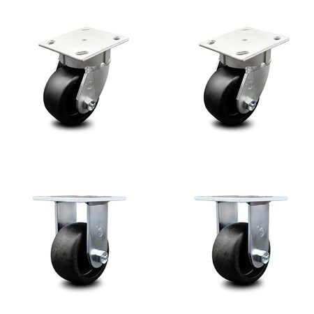 Kingpinless Glass Filled Nylon Swivel Top Plate Caster Set of 4 w/4" x 2" Black Wheels - Includes 2 Swivel & 2 Rigid - 4800 lbs Total Capacity - Service Caster Brand