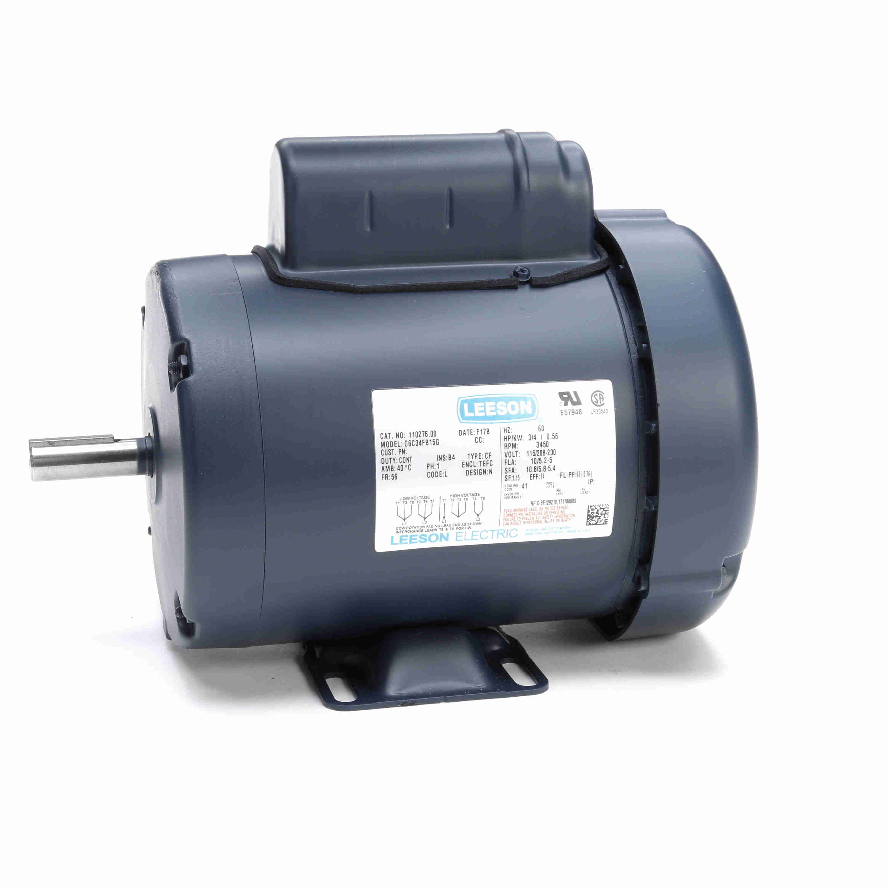 Leeson Electric, 110276.00, .75HP, 3450RPM, 1PH, 115V;208V;230V, 56 Frame, Standard Flange, Foot Mount, TEFC, General Purpose Motor