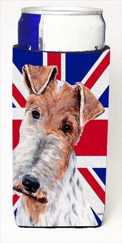 Caroline's Treasures SC9887MUK Wire Fox Terrier with English Union Jack British Flag Ultra Hugger for slim cans Can Cooler Sleeve Hugger Machine Washable Drink Sleeve Hugger Collapsible Insulator Beve