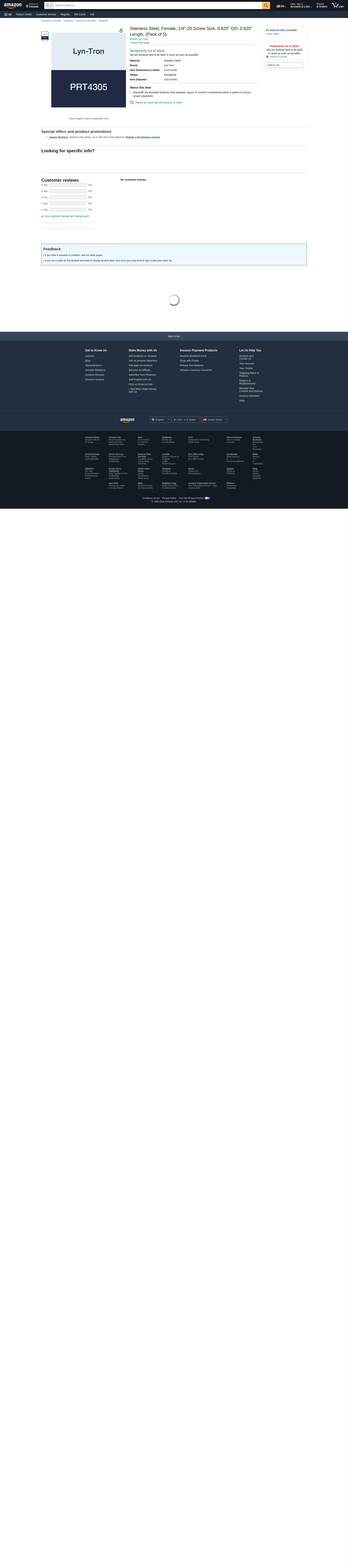 Lyn-Tron, Stainless Steel, Female, 1/4"-20 Screw Size, 0.625" OD, 0.625" Length, (Pack of 5)