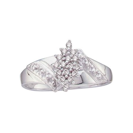 <ul> <li>10kt White Gold</li> <li>1/10 Carats total weight</li> <li>Total Metal: 2.41 grams (approximately)</li> <li>Ring size selectable. All diamonds are natural and conflict-free in origin.</li> </ul>