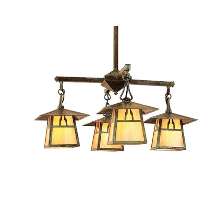 Arroyo Craftsman CCH-8/4TCS-AC Carmel 4 Light Chandelier with t-bar Overlay, 8", Antique Copper Metal Finish, Clear Seedy Glass, 26.5" x 26.5" x 25.62"