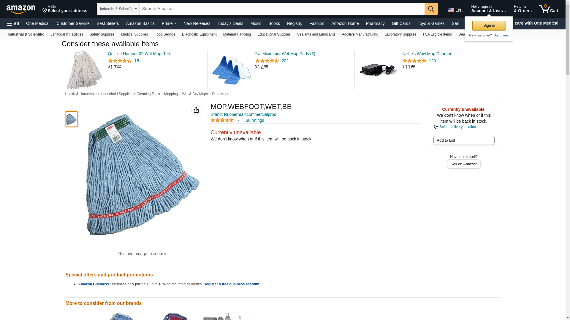 | Feature | Web Foot wet mops contain antimicrobial product protection, which inhibits the growth of bacteria that cause odors and stains |