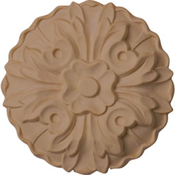 3 5/8"W x 3 5/8"H x 5/8"P Kent Floral Round Rosette, Rubberwood