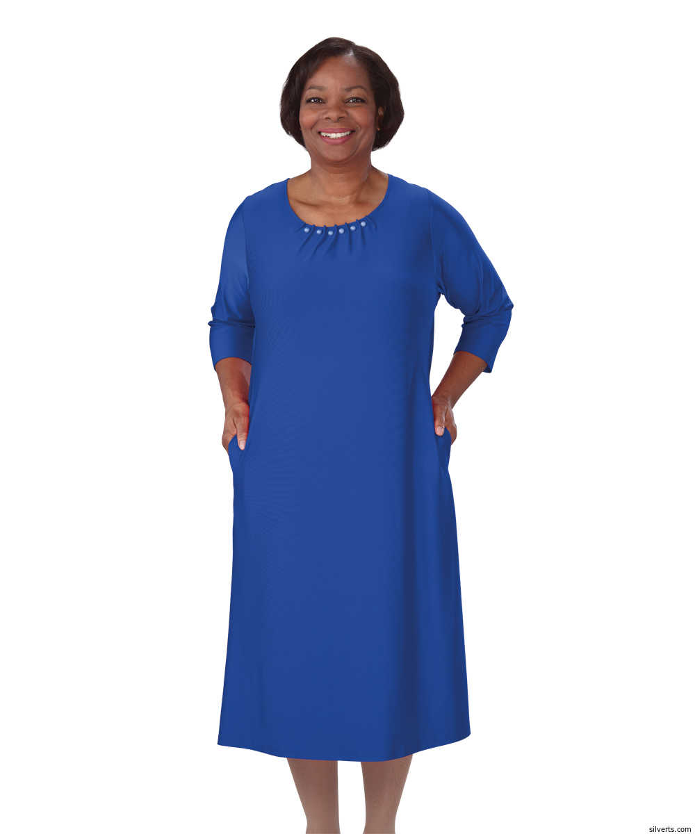 Silverts 211200204 Womens Pearl-Adorned Open-Back Shirred-Neck Adaptive Dress with Side Seam Pockets, Royal - Extra