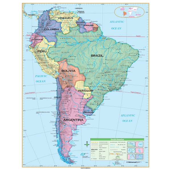 Universal Map 0762544503 South America Essential Classroom Wall Map On Roller With Backboard