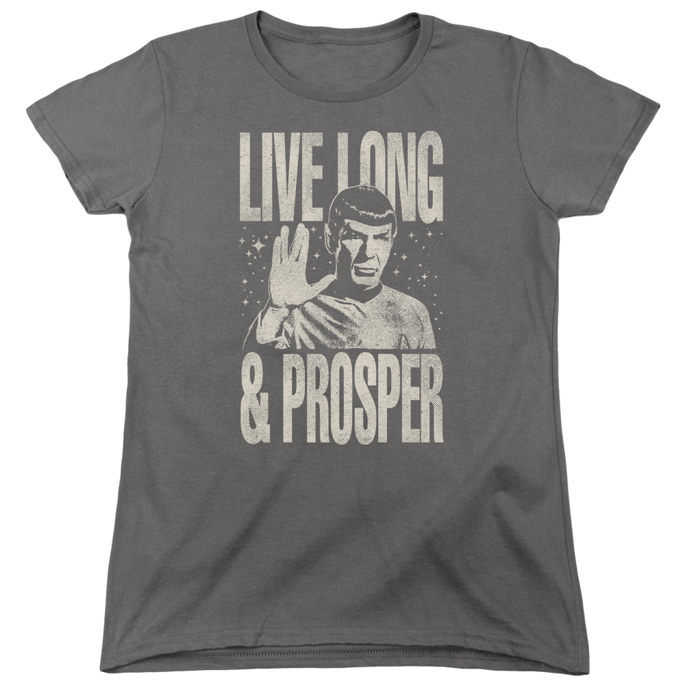 Trevco CBS1577-WT-2 Star Trek & Prosper Short Sleeve Cotton Women T-Shirt, Charcoal - Medium