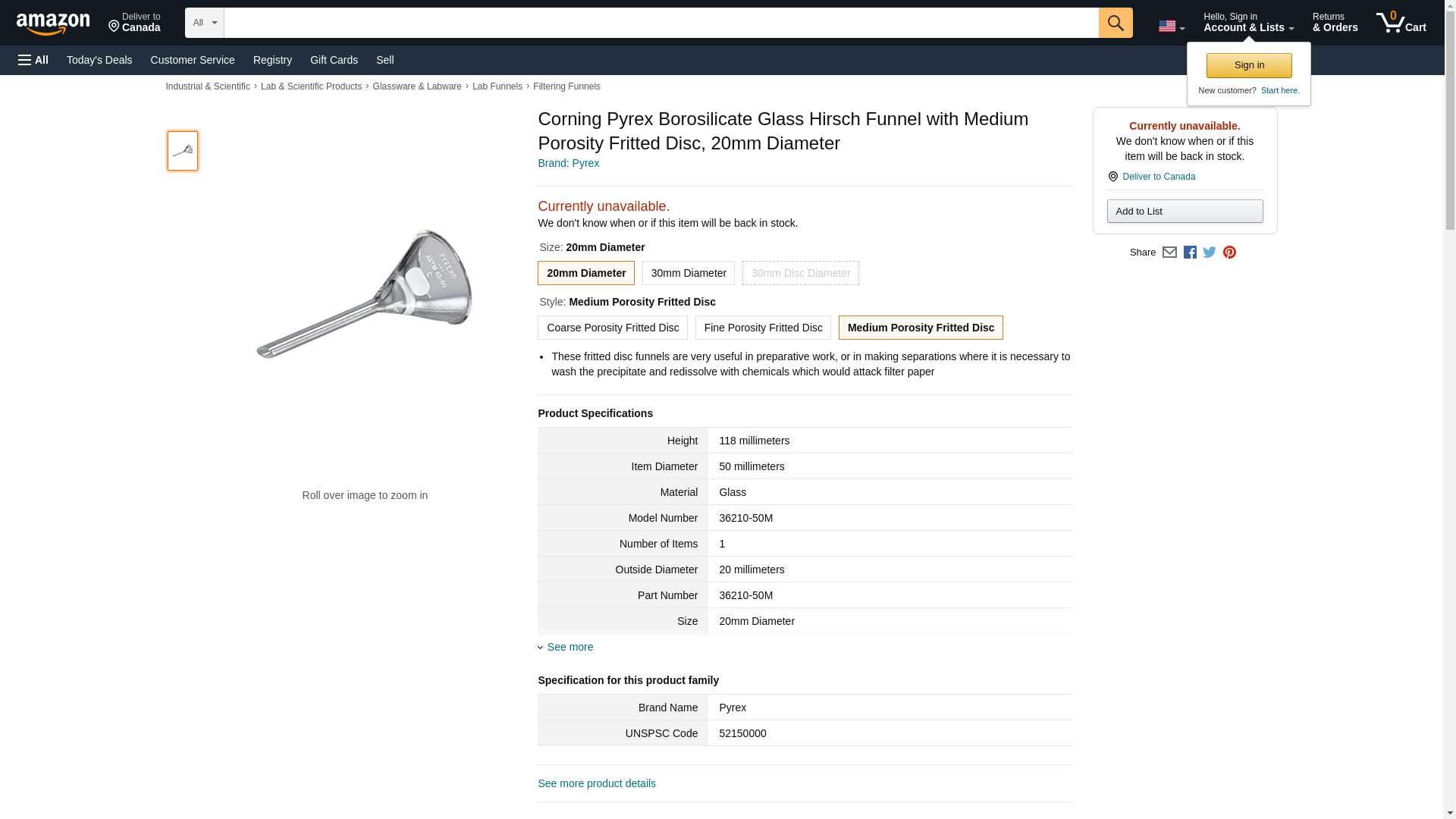 Corning Pyrex Borosilicate Glass Hirsch Funnel with Medium Porosity Fritted Disc, 20mm Diameter