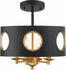 - Matte black and antique gold finish over steel construction. Drum-shape with peek-a-boo circle cutouts design.