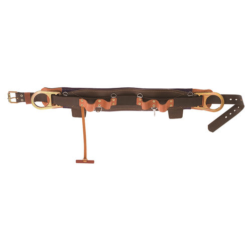 - The Klein 5268N-24D lineman's fixed body belt A 1-3/4-inch (44-mm) wide belt strap Made of 6-ply klein-kord that incorporates a 4-3/4-inch (120.6-Mm) rolled-edge leather belt cushion with no padding. The 5268N-24D leather belt pad is designed with two pocket tabs and is equipped with 90-degree double-bar D-rings. The belt has a d-to-d (hipbone to hipbone Plus 2-inch) size of 61-cm, a minimum length of 40-Inch, measures 44-inch to the center hole distance, and has a maximum length of 48-inch. Since 1857, Klein Tools has manufactured the world's finest hand tools. Today, Klein Tools is the no.1-Choice among professional tradesmen. we manufacture more than 3, 000 tools and Accessories, including Pliers, Cable and bolt cutters, wire strippers, voice-data-video tools and testers, Fish tapes, Conduit BENDERS, drill bits, insulated tools, gloves and many other high-quality products. Klein Tools' Dedication to quality and innovation continues with products available for professional tradesmen Worldwide.