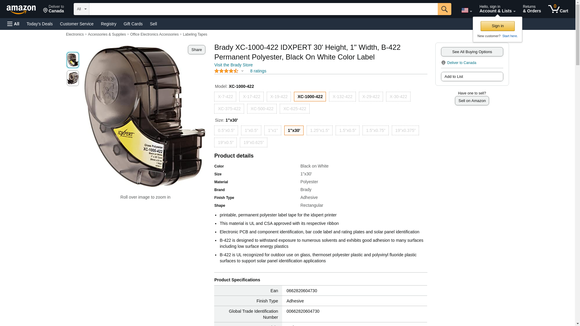 Brady XC-1000-422 IDXPERT 30' Height, 1" Width, B-422 Permanent Polyester, Black On White Color Label