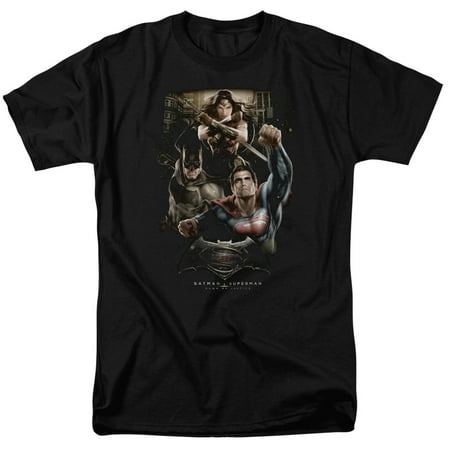 Batman v Superman Three In Action Adult Regular Fit Short Sleeve T-Shirt XX-Large Black