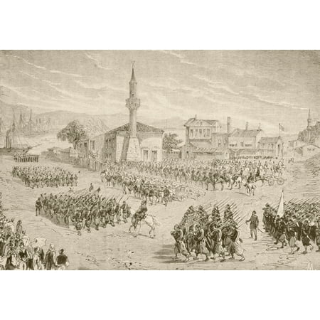 Turkish Troops Embarking To Fight In The Russo-Turkish War 1877-1878. From A 19Th Century Illustration. was reproduced on the finest Canvas which captures all of the vivid colors and details of the original art. This museum quality Canvas Art was faithfully reproduced using ultra-precision print technology and fade-resistant archival inks on artist premium acid-free grade canvas. The overall size is 34 x 24 inches plus an additonal 1.5 inches of extra canvas on all 4 sides to allow for easy stretching and/or framing. This premium rolled Canvas Art is ready for stretcher bars or custom framing. <br /> <br /> <ul> <li>Brand New and Rolled and ready to stretch or frame</li> <li>Canvas Art Title: Turkish Troops Embarking To Fight In The Russo-Turkish War 1877-1878. From A 19Th Century Illustration.</li> <li>Canvas Size: 34.00 x 24.00 inches plus an additional 1.5 inches of extra canvas on all 4 sides to allow for easy stretching and/or framing</li> <li>Licensor: Design Pics</li> <li>Artist: Ken Welsh / Design Pics</li> </ul>