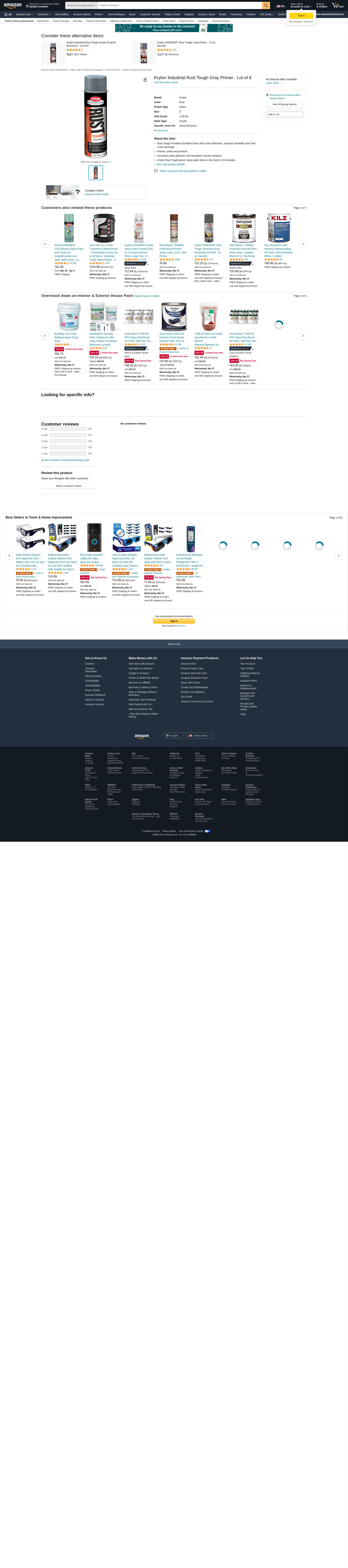 Buy Krylon K00829007 15 oz Rust Tough Aerosol Primer, Gray on HomElectrical.com.