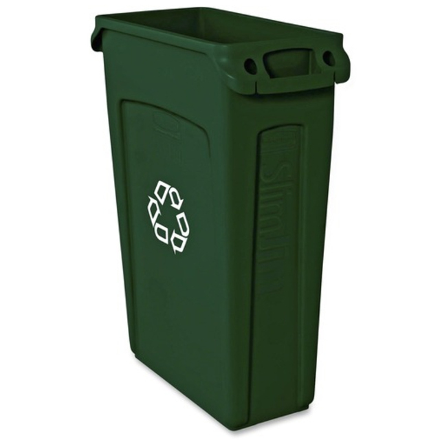 - Slim Jim Recycling Container With Venting Channels, Plastic, 23 Gal, Green
