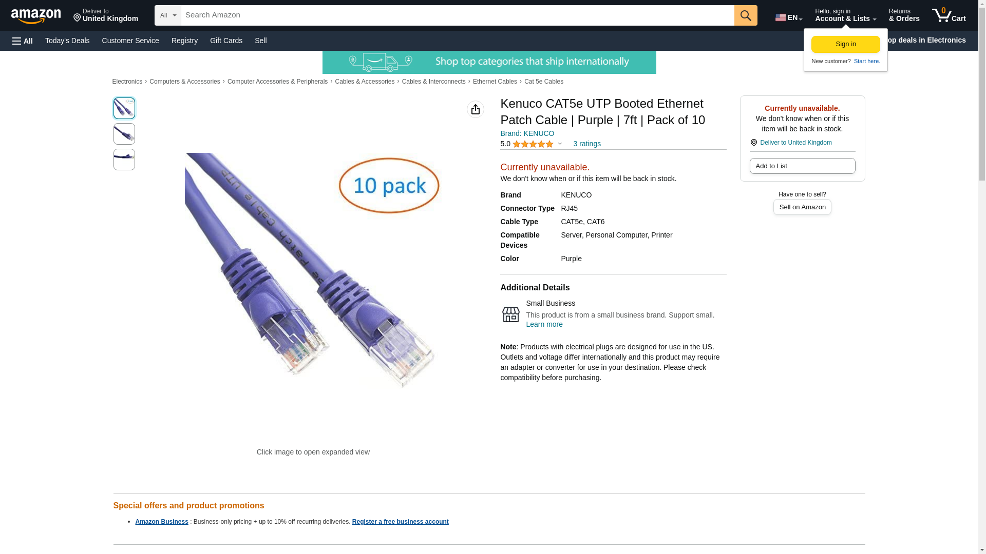 Kenuco CAT5e UTP Booted Ethernet Patch Cable | Purple | 7ft | Pack of 10