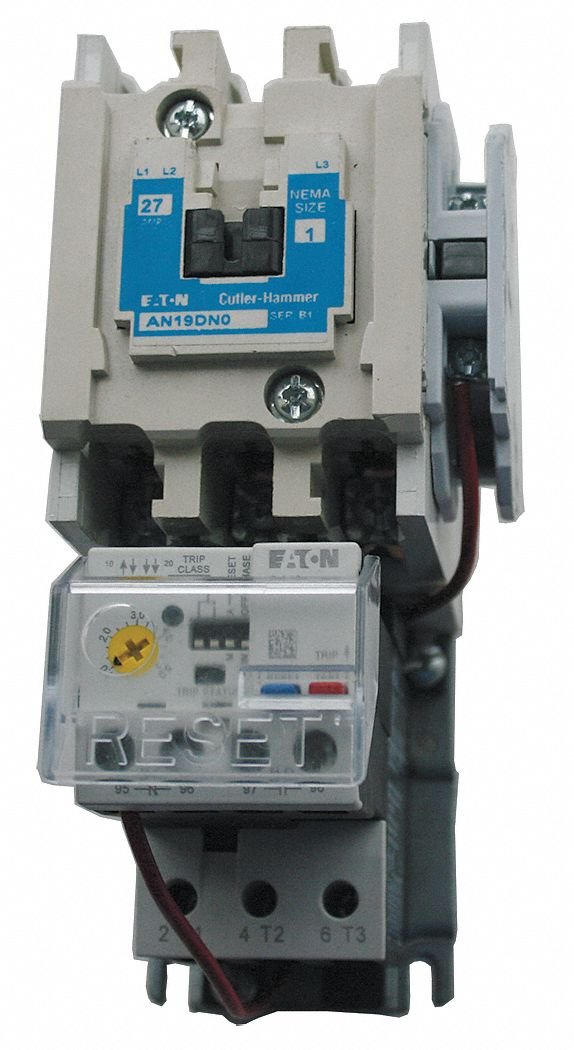 J0889 NEMA Magnetic Motor Starter Overload Relay Amp Setting 0.33 to 1.65A Coil Volts 240VAC Enclosure NEMA Rating No Enclosure Auxiliary Contact Form 1NO HP @ 3 Phase - 240V 7-1/2 HP @ 3 Phase - 480V 10 Starter Type NEMA Style Action Nonreversing Hz 50/60 Number of Poles 3 Amps AC 27 NEMA Size 1 Width 5 In. Features Class 20 Solid State Ambient-Compensated Overload Relay and Instantaneous Magnetic Trip Mechanism HP @ 1 Phase - 120V 2