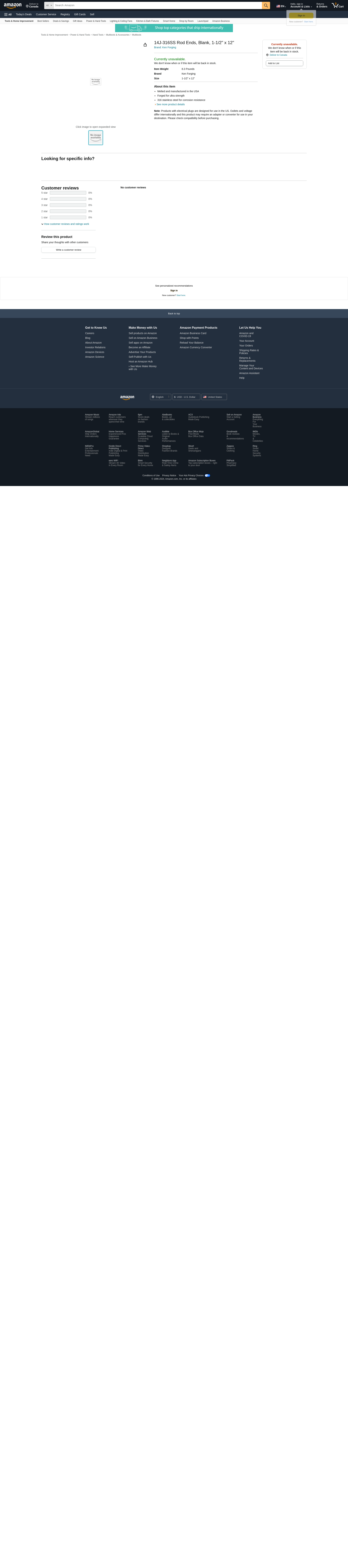 Ken Forging 14J-316SS Rod Ends, Blank, 1-1/2" x 12"