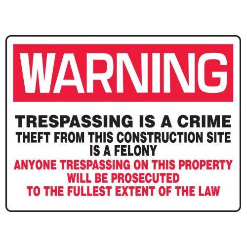 Order MADM309VP by Accuform Warning Safety Sign "Trespassing Is A Crime..." - US Mega Store