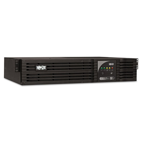 Tripp Lite SmartPro Line Interactive UPS with enhanced LCD interface offers network-grade power protection for critical server, network and telecommunications equipment. Line Interactive Uninterruptible Power Supply (UPS) with built-in Auto-Voltage Regulation (AVR) actively corrects brownouts and overvoltages back to usable levels while maintaining a full battery charge in case of power failure. Tripp Lites unique configuration excels in exceptionally poor-power environments with two separate levels of voltage boost to correct both slight undervoltages and severe brownout conditions. Interactive LCD/LED interface reports UPS operating mode, detailed UPS and site-power data, plus enables a variety of UPS setup and configuration options. Super-fast switchover from line to battery power occurs within milliseconds to maintain operation of connected equipment without interruption or reboot. 98% line-mode efficiency offers reduced heat emissions and operating costs. Network management interfaces support communications via USB, RS-232 and optional SNMPWEBCARD network interface. HID-compliant USB interface enables integration with built-in power management and auto shutdown features of Windows and Mac OS X. Network communications ports enable detailed monitoring of equipment load levels, self-test data and utility power conditions. Includes PowerAlert monitoring software and complete cabling. Switched output load banks enable scheduled and real-time remote reboot and load shedding of select outlets. Emergency Power Off (EPO) interface. LED/LCD display panel easily rotates for viewing in rackmount or tower configurations. Audible alarm with push-button momentary alarm-cancel and silent-mode configuration options. Programmable self-test. Field-replaceable, hot-swappable battery modules.