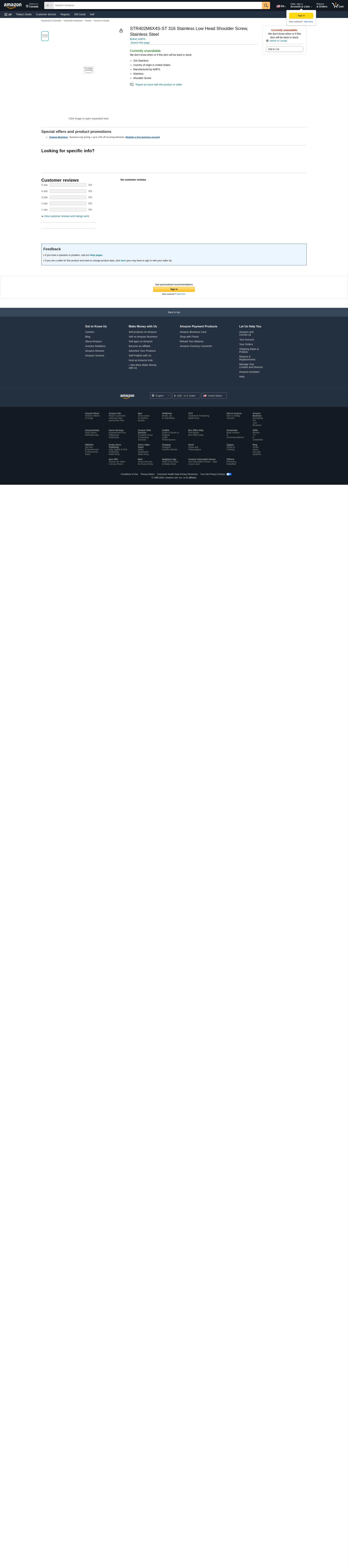 AMPG STR402M6X4S-ST 316 Stainless Low Head Shoulder Screw, Stainless Steel