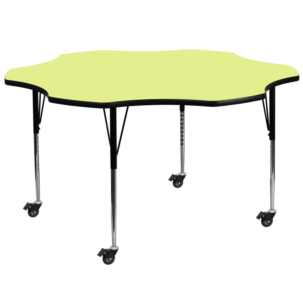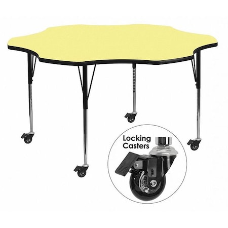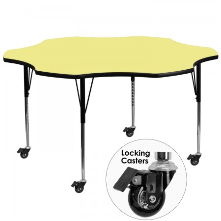 Flash Furniture Mobile 60'' Flower Yellow Thermal Laminate Activity Table - Standard Height Adjustable Legs