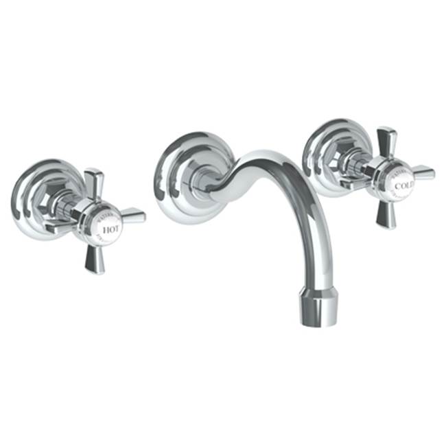 WATERMARK 206-2.2S-S1-SN PARIS THREE HOLES WALL MOUNT BATHROOM FAUCET WITH 6 1/8 INCH SPOUT REACH, SATIN NICKEL,...