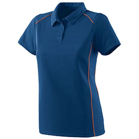 100% polyester wicking closed hole mesh; 100% polyester pinhole micromesh shoulders and side panels for breathability; Contrast color piping on shoulders, front and back; Set-in sleeves; 3 button box-stitched placket ; Double-needle hemmed sleeves and bottomá; Ladies Fit ;