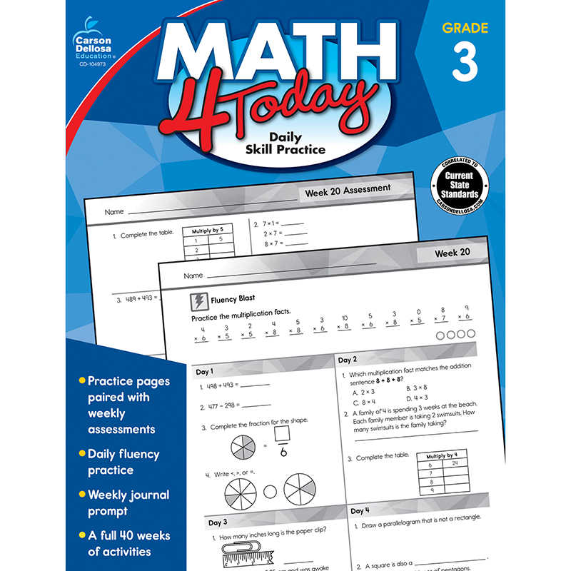 Math 4 Today Workbook, Grade 3 - CD-104973 | Carson Dellosa Education | Activity Books