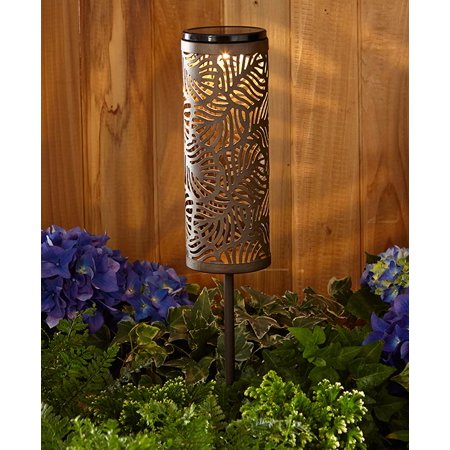 <p></p> <ul> <li>Buy multiple to line a path or edge a flower bed</li> <li>Light shines through cutouts for a dazzling display</li> <li>Details:</li> <ul> <li>3-3/8" dia. x 40-3/8"H, with a 2" ground stake</li> <li>Metal</li> <li>Solar powered</li> </ul> </ul>