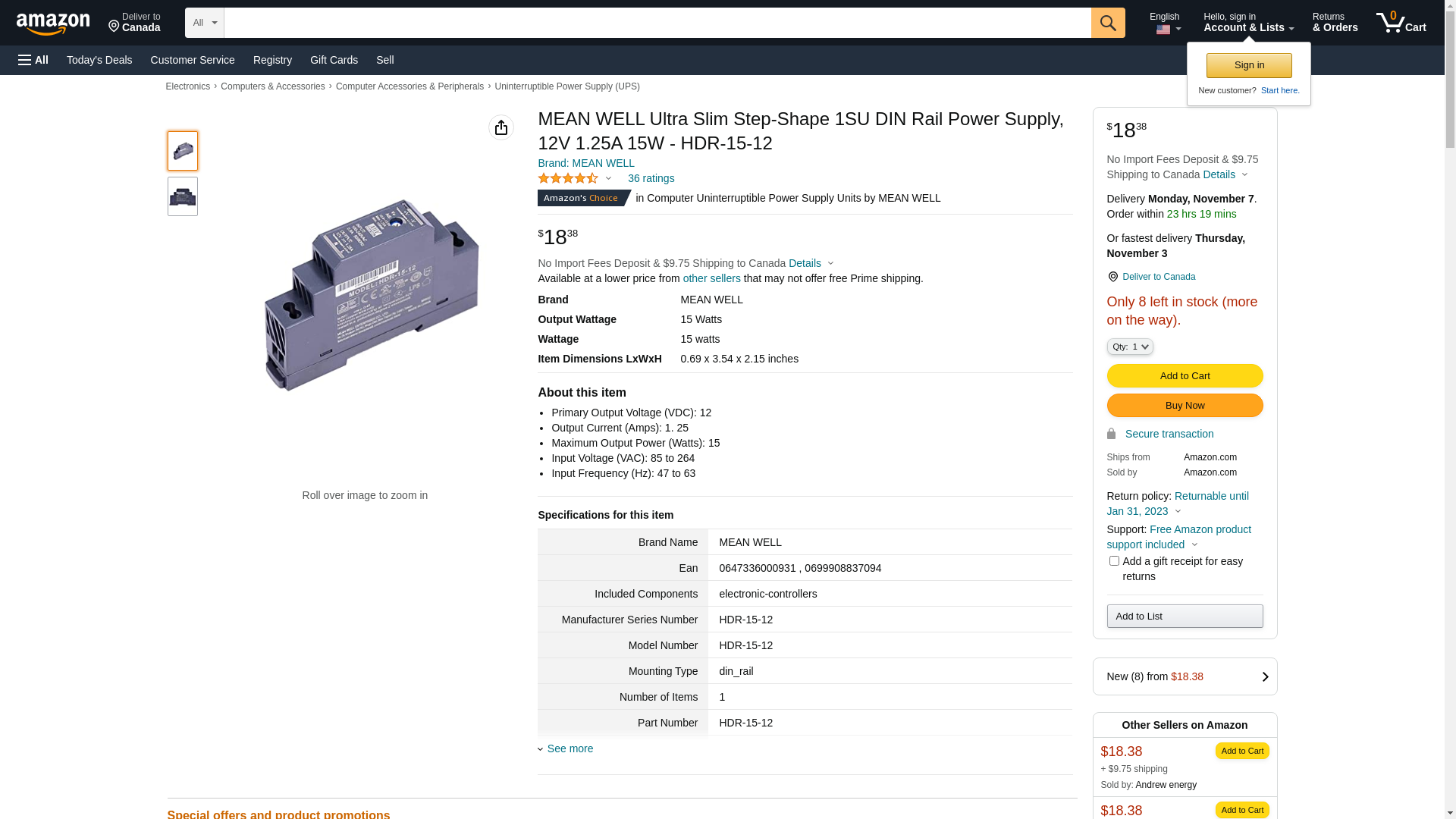 | electricautomationnetwork.com | HDR-15-12 | 1 | 1 | 1 @ $16.30 | |