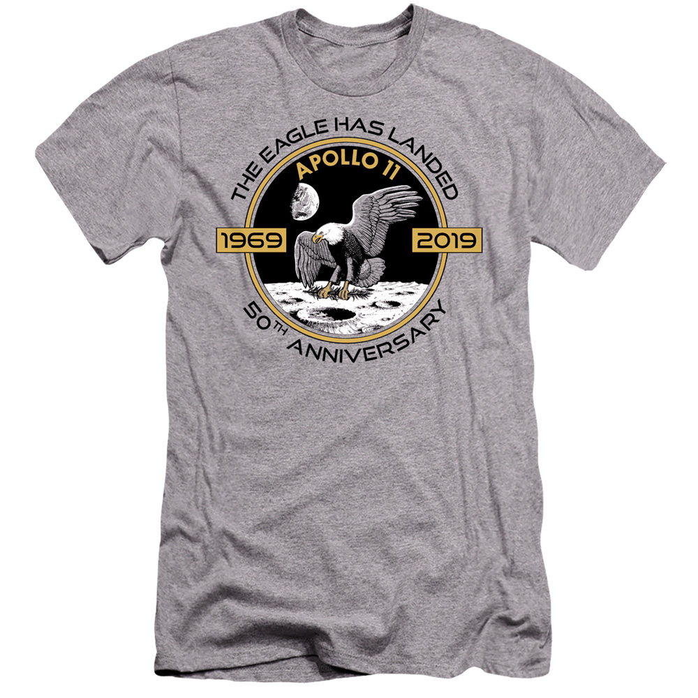 Trevco NASA160-PSF-4 NASA & Apollo Circle 50th-HBO Short Sleeve Adult 30-1 T-Shirt, Athletic Heather - Extra Large