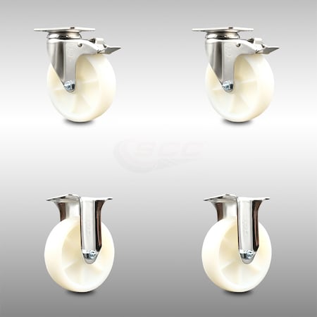 Service Caster Brand 5 Inch 316 Stainless Steel Light Duty Swivel Casterset of 4 Nylon Caster Wheels – 1,200lbs. Total Cpty– 2 Swivel with Total Lock Brakes/2 Rigid