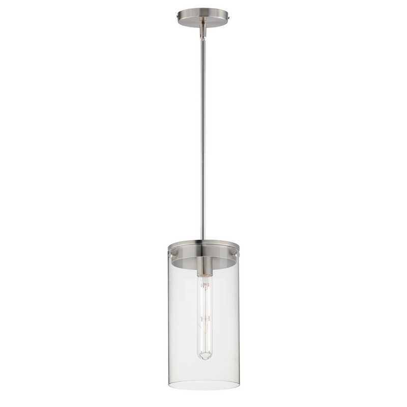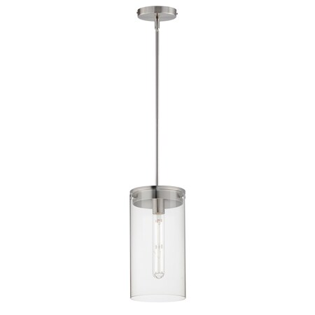 This 1 light Single Pendant from the Pinn collection by Maxim will enhance your home with a perfect mix of form and function. The features include a Satin Nickel finish applied by experts. Product Features Include: Brand: Maxim Lighting, Collection: Pinn, SKU: 12408CLSN, UPC: 783209280502, Category: Pendant, Finish: Satin Nickel, Glass: Clear, Material: Steel/Glass, Length: 8.00 in., Width: 8.00 in., Height: 14.00 in., Max Height: 59.00 in., Backplate/Canopy Width: 4.75 in., Backplate/Canopy Length: 4.75 in., Backplate/Canopy Thickness: 0.75 in., Weight: 4.84 lb., Included Lead Wire: 120, Bulbs Included: No, Bulb Category: Incandescent, Primary Bulb(s): 1 x 60.00 watts E26 Medium, Voltage: 120, Safety Rating: Dry