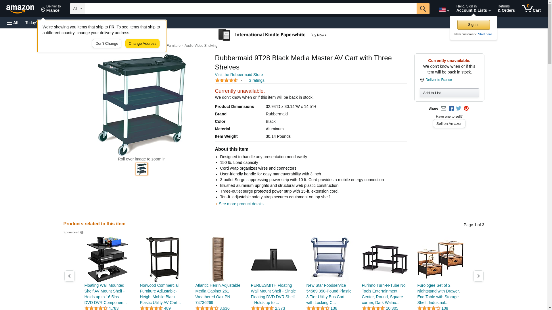 Rubbermaid 9T28 Black Media Master AV Cart with Three Shelves