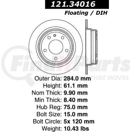 Centric Parts 121.34016 C-Tek Standard Brake Rotor
