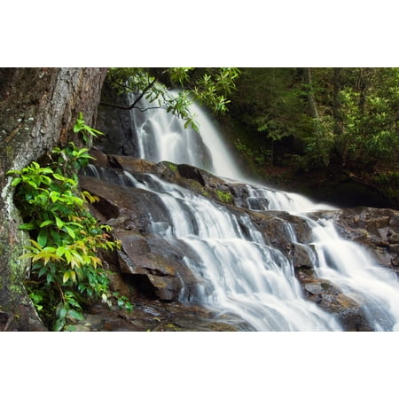 Water cascading over rocky cliffs Laurel Creek Falls Great Smoky Mountains National Park Tennessee USA Poster Print