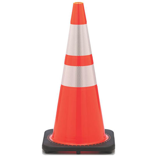The JBC Revolution Series utilizes premium grade PVC injection molding technology to produce extremely durable traffic cones. Features 3M reflective collars for visibility at night. Meets NCHRP-350 and MUTCD requirements. Fluorescent Orange. Material PVC w/3M reflective collar, Height in. 28, Reflective Yes, Cones Included qty. 1, Color Fluorescent Orange. Two 3M high-intensity reflective collars for outstanding durability and superior safety at night Strategically placed cavities in base allow cone to absorb repeated impacts with no damage Circle interlocking system allows 2-pc. cone to work as single, practically indestructible unit Stippled inside to eliminate sticking 100 recyclable Model Number: RS70032CT3M64. Size: 28 Inch. Color: Orange. Age Group: Adult.